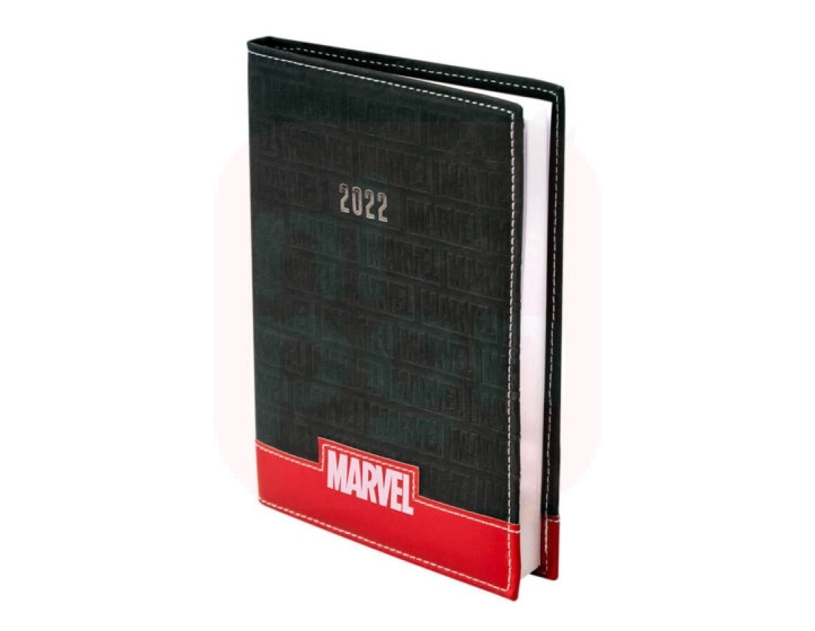 Agenda diária da Marvel com material elegante para acompanhar o ano de 2022 sem perder nada. Ideal para carregar na bolsa ou na mala para qualquer lugar.