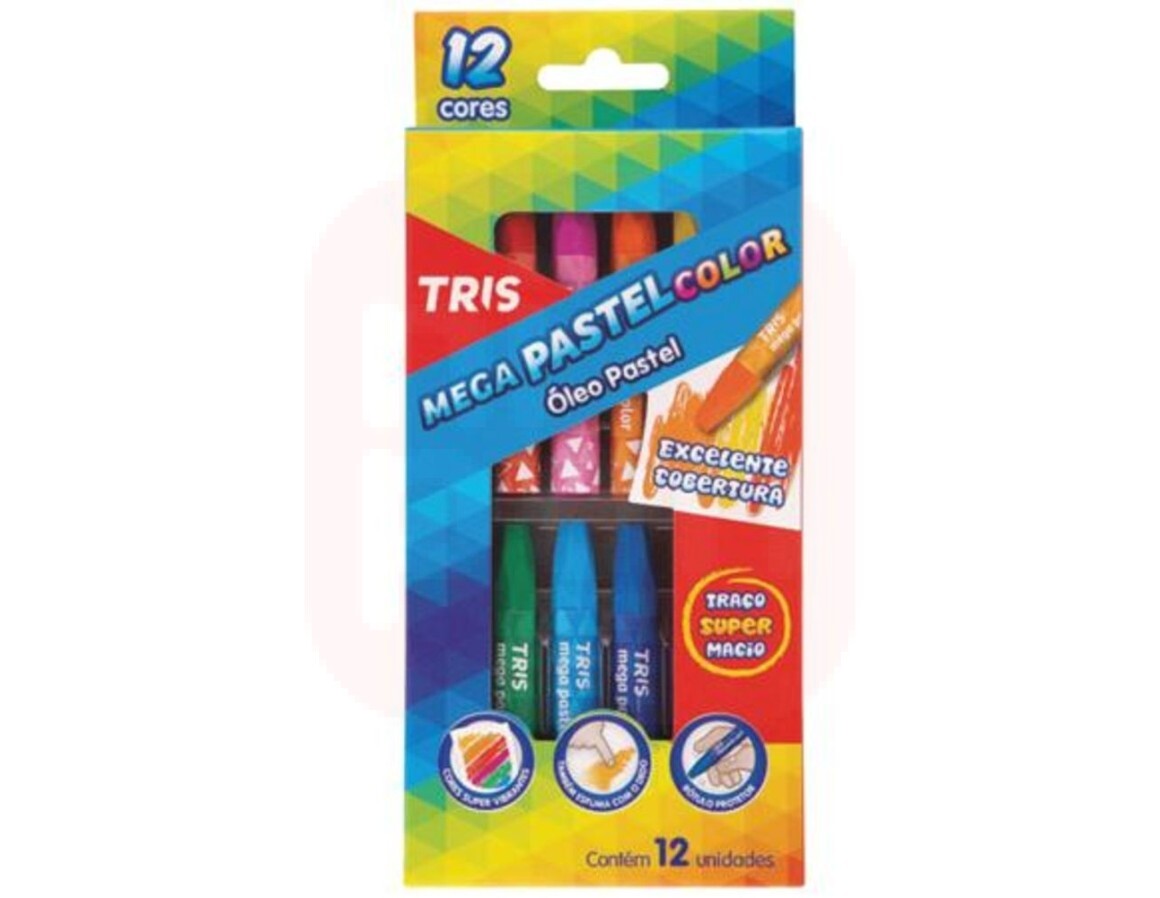 Giz de Cera 12 Cores Mega Pastel - Tris